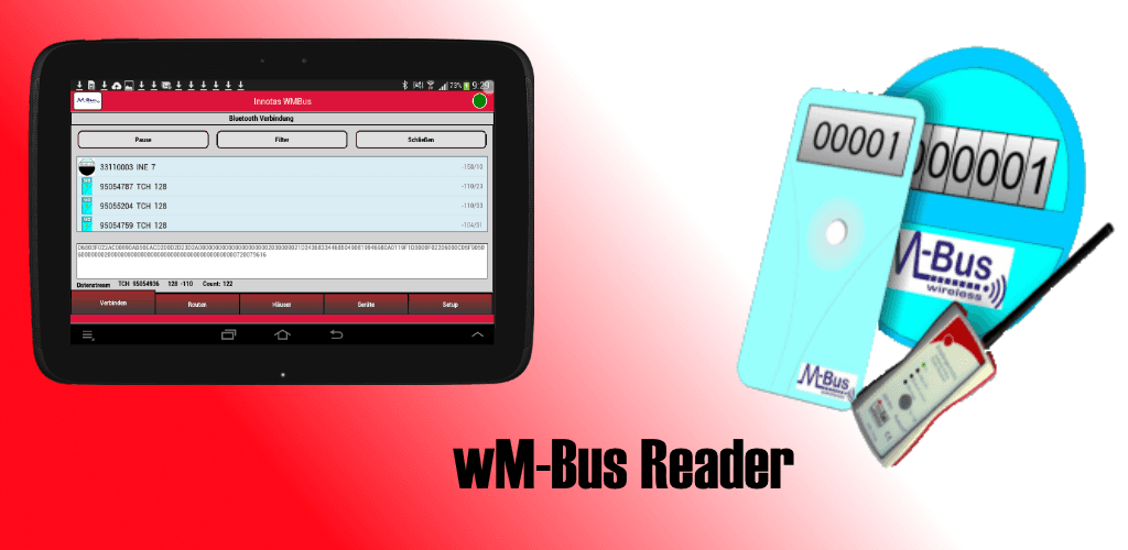 Die Android App wM-Bus Reader ist ein starkes Tool für die mobile Ablesung von wM-Bus Endgeräten. Die App arbeitet mit dem